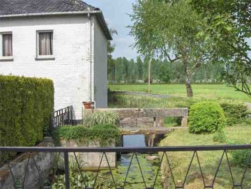 Het houten onderslagrad met metalen schoepen werd vernieuwd na de breuk van de houten wateras in 2002. De eigenlijke Mombeekbedding is verlegd.
