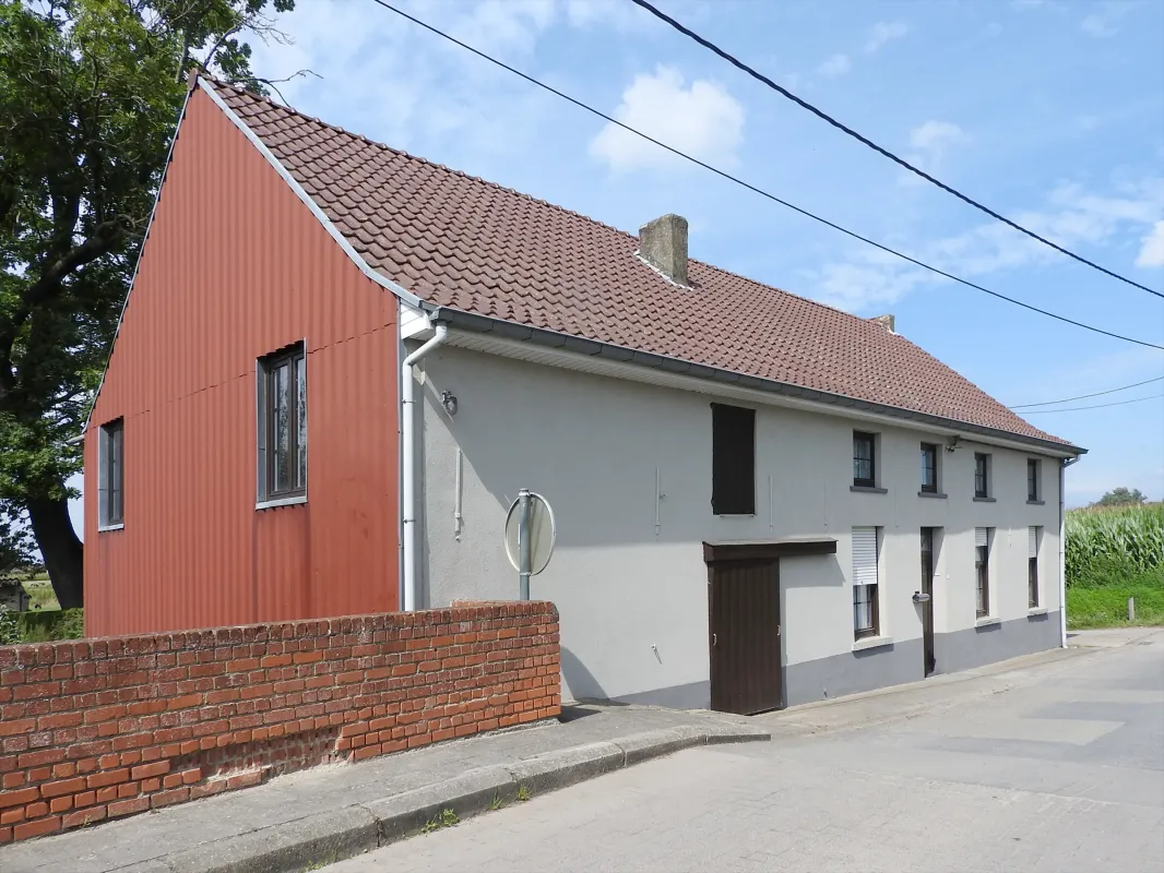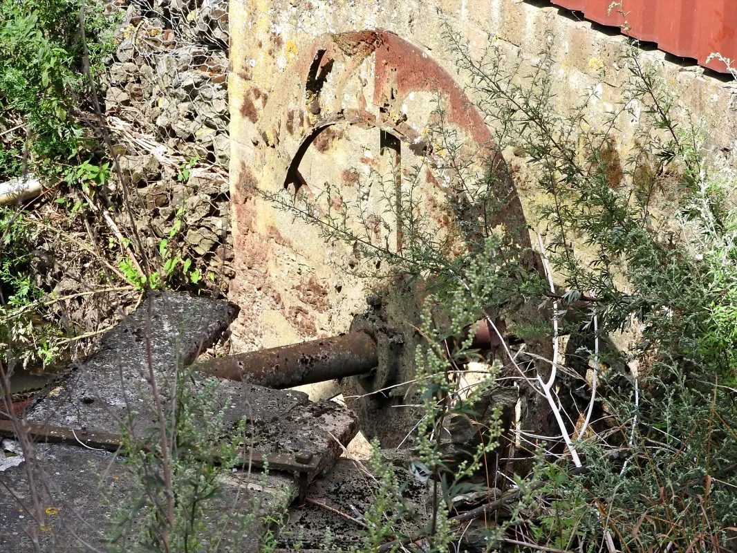 Daartegenover ook ten westen van de beek, vervallen gewitte bakstenen stal met ijzeren aalpomp aan straatgevel. Opgetrokken circa 1890 ter vervanging van twee kleinere gebouwtjes