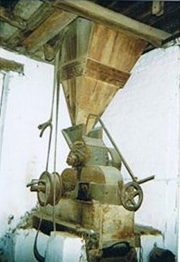 - Twee steenkoppels, haverbreker, slijpsteen, schijfzaag, motoraandrijving
