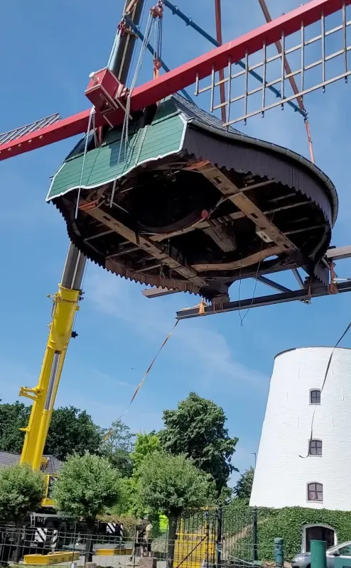 Meegesleurd door een storm in de nacht van 10 maart 1786 verpletterde de standaardmolen het molenaarshuis.