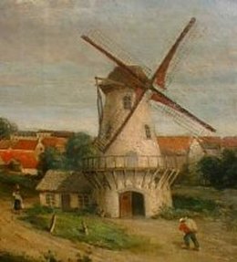 Un moulin-tour en brique avec galerie a été construit en 1841 à Evere près de Bruxelles pour moudre la farine.