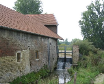 Om een verval te creëren, werd de Menebeek in een ver verleden stroomopwaarts van de molen over een afstand van 90m gekanaliseerd tussen hoge dijken. Zonder te stuwen is er een verval van ongeveer 2 m. Stuwen tot aan het maximaal toegelaten peil (= het pegelpeil) brengt dit verval naar 3 m.